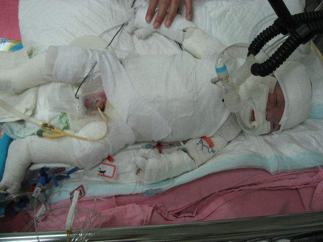 從出生到成長,病人需要大量的外用抗生素及大量的紗布、繃帶等敷料,